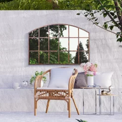 MirrorOutlet Metal Arched Decorative Window Effect Garden Mirror – 92x61cm