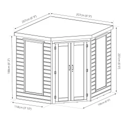 The Ribble corner summerhouse is a unique size summerhouse, ideal for the corner of any garden, great for those looking for somewhere to relax and unwind during the summer months. The spacious and light interior is great for large pieces of furniture, comfy chairs or dining sets, to create the perfect garden retreat. Boasting four large styrene glazed windows and half glazed double doors, the interior is a bright and welcoming.