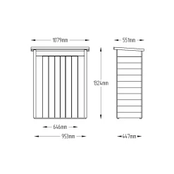The clever design means the pent roof can be assembled sloping back or forward to suit its location. With a relatively compact footprint, this garden store can be sited near front or back doors, on a patio or in any garden setting. The attractive design features traditional overlapping pressure treated timber boards and shiplap tongue & groove front panels with double doors. The store is finished with a felted roof and decorative, smooth-planed barge boards.