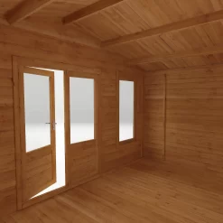 The windows and doors are supplied with double glazing, ensuring you benefit from the maximum heat retention and noise reduction. We supply all of our log cabins with a secure mortise lock and key, so you can be confident in the security of your new garden building.