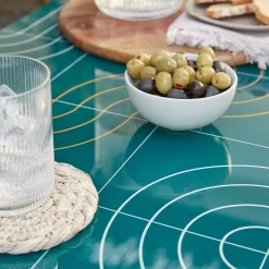 Enjoy some well-earned relaxation with the Omari garden sofa set. Finished in gold with luxurious teal showerproof cushions, this set is a statement piece for any outdoor space.