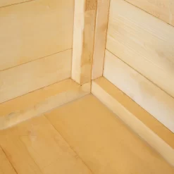 It is manufactured from high quality FSC certified northern European pine. The floor is tongued and grooved timber and the roof is solid sheet OSB; mineral felt is included.