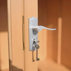 The contemporary Highclere summerhouse is a stunning design updating the traditional summerhouse into a modern garden room. The high quality double doors open out to the front with a small canopy over and there are large opening side windows. The windows and doors are fitted with plastic safety glazing and are joinery made in a storm resistant design. The doors are also fitted with a mortice lock.