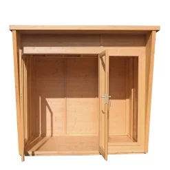The building is constructed on strong 44mm square framing and clad with planed shiplap tongue and groove boards made only from the highest grade, slow grown, FSC approved, northern European pine. The summerhouse is supplied with a dip treated base coat preservative ready for you to top coat to your choice immediately on installation; this could be a paint or a stain.