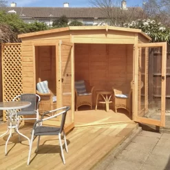 The Barclay is a magnificent summer house designed to fill a corner of your garden. With its full height, styrene safety glazed windows and doors, this summerhouse lets in lots of light and is a delight to spend your time in.
