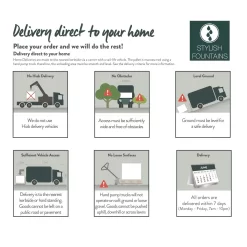 - Self contained fountain with recirculating pump included so no mains plumbing required